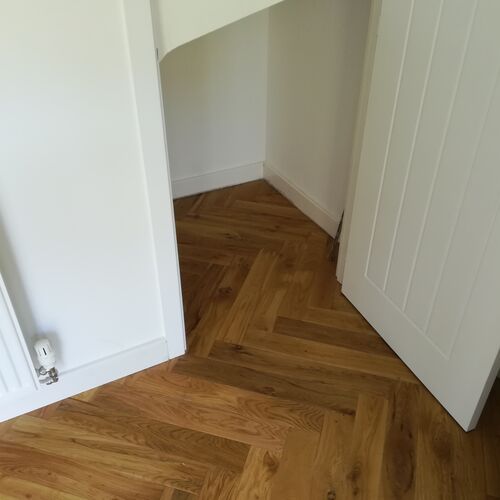 Residence in Durham. Client required 6mm plywood and her own flooring laid in a herringbone pattern.