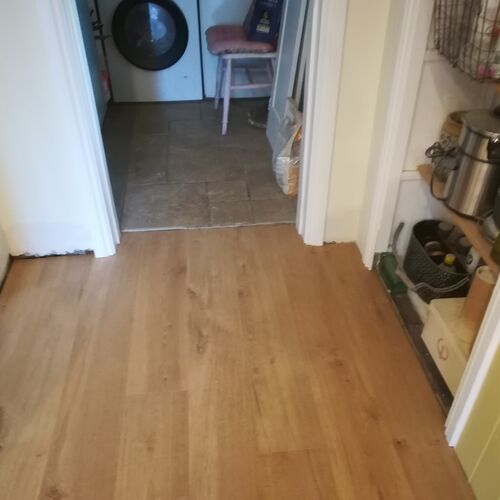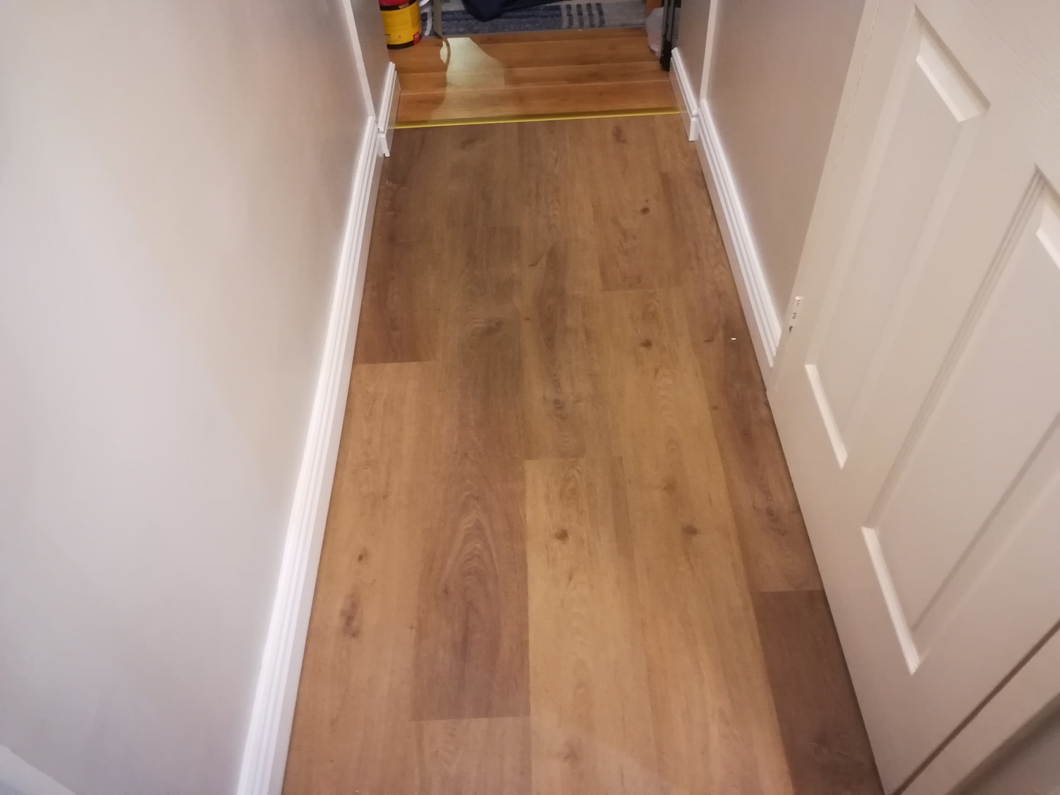 Private residence in Sunderland. The client required extra long planks to be laid in the passageway downstairs toilet and kitchen. This product required a full stick down.