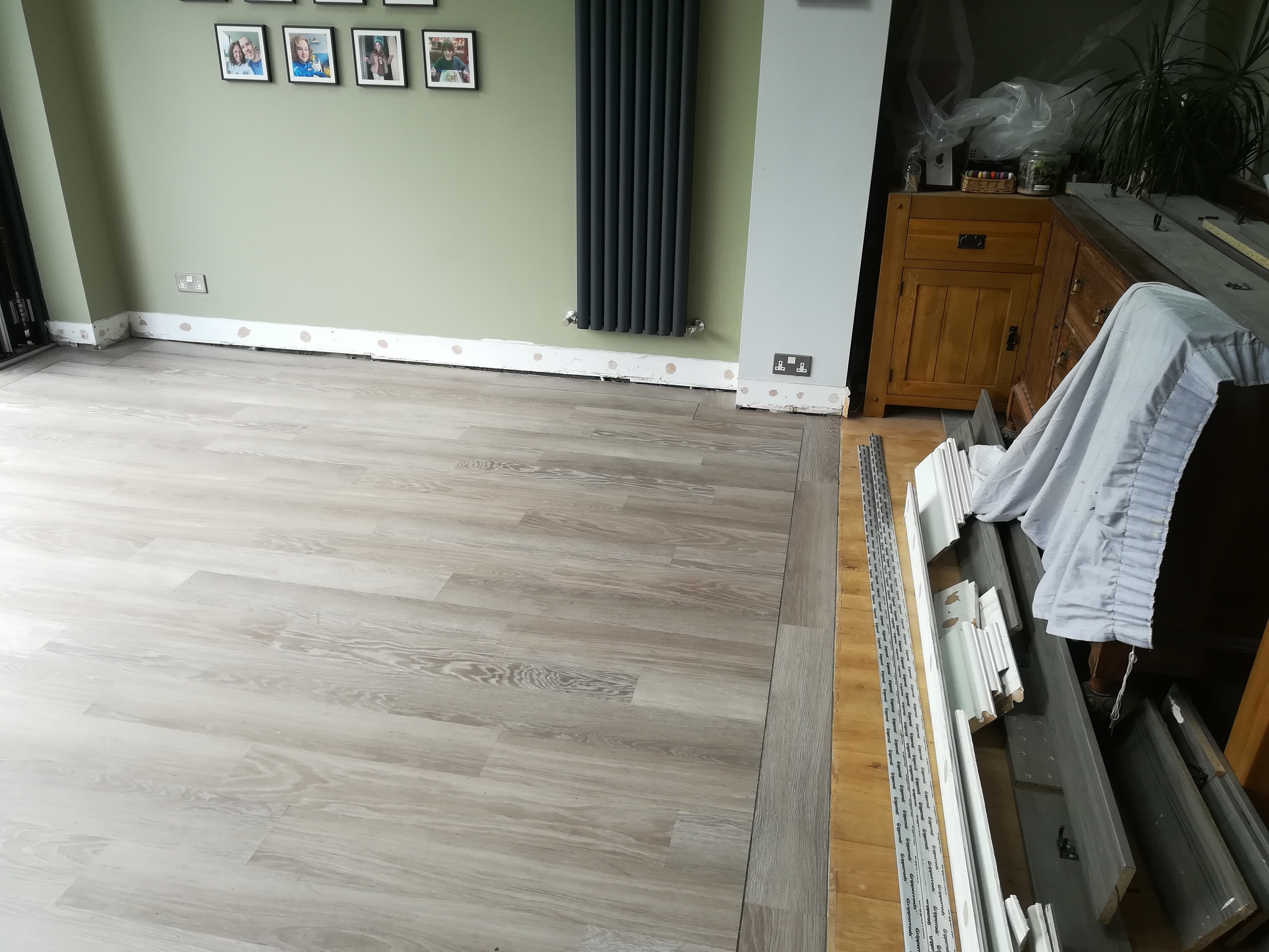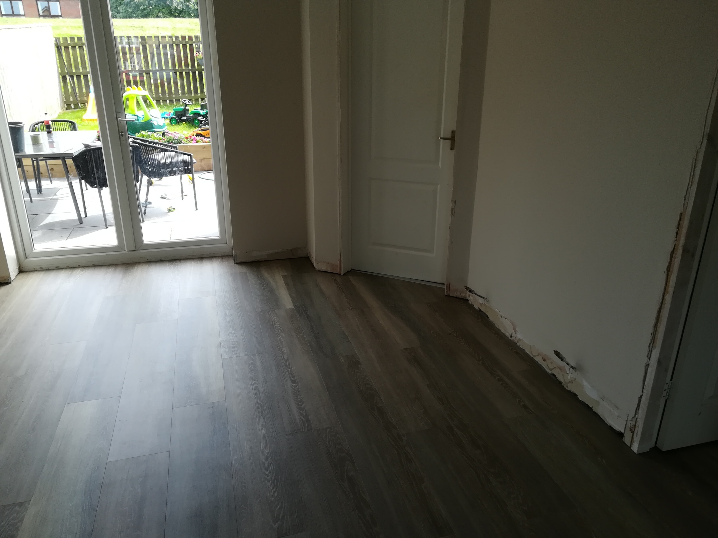 Residence in Newcastle. Client required a full screed in the living room. Then the clients own lvt was fitted with a full stick down.