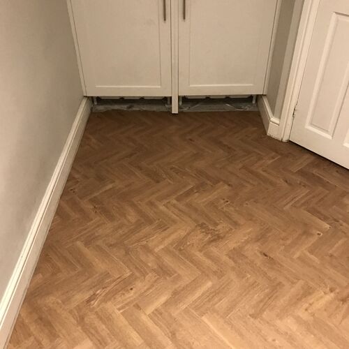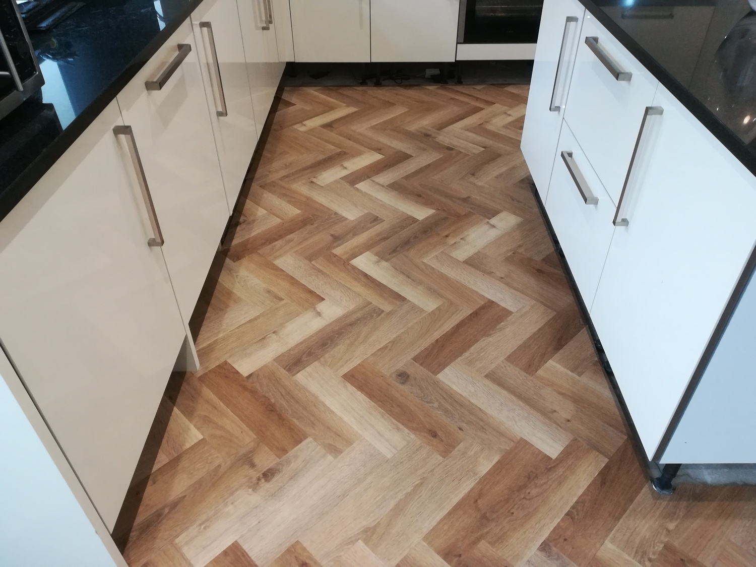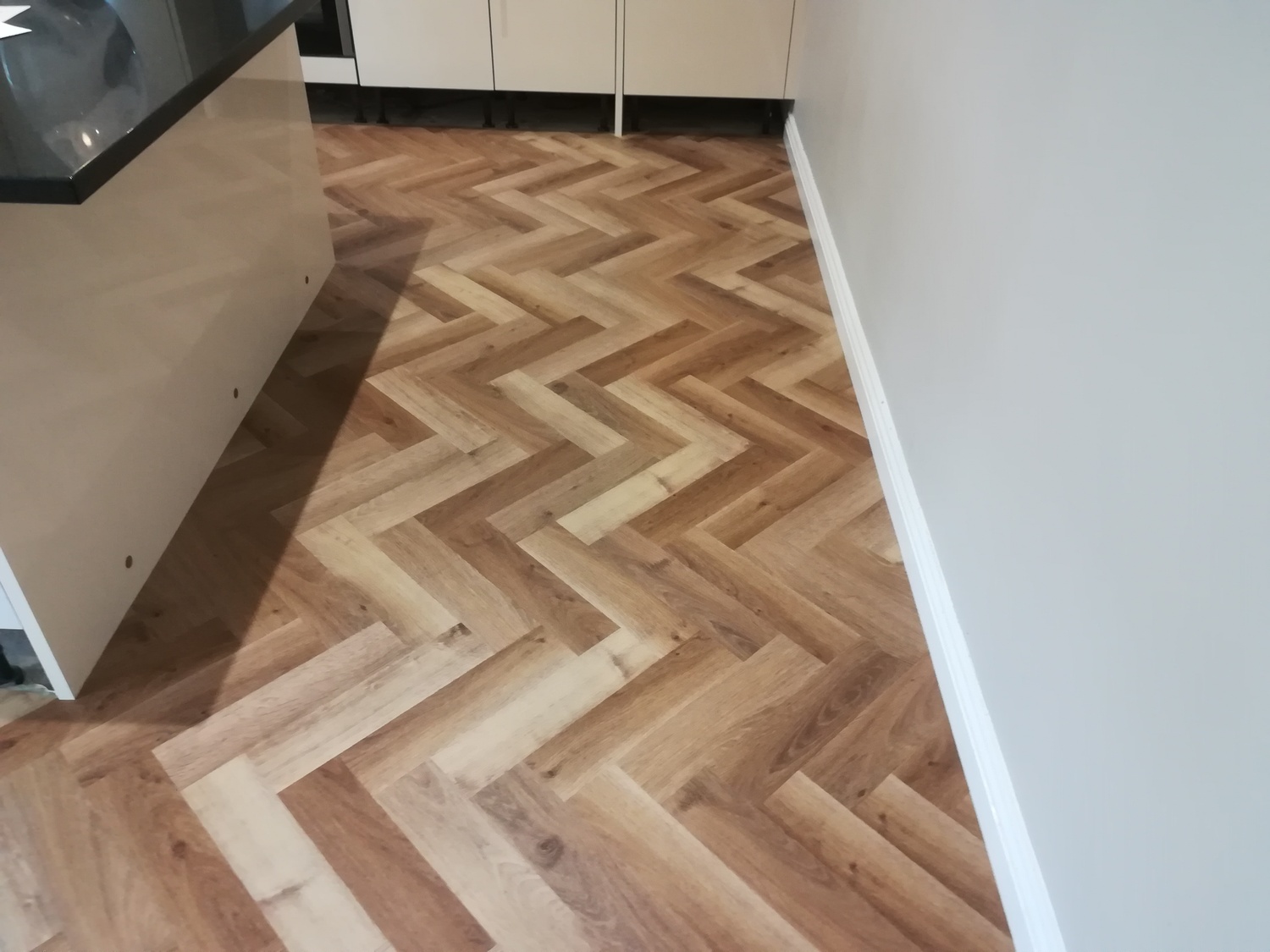 Private residence in South Shields. The client required 12mm laminate in herringbone pattern through out the kitchen.