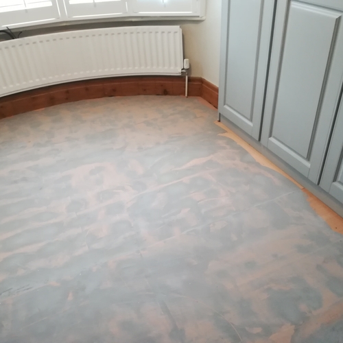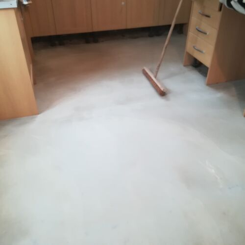 Private residence. Client required a full screed of the kitchen, then vinyl laid.