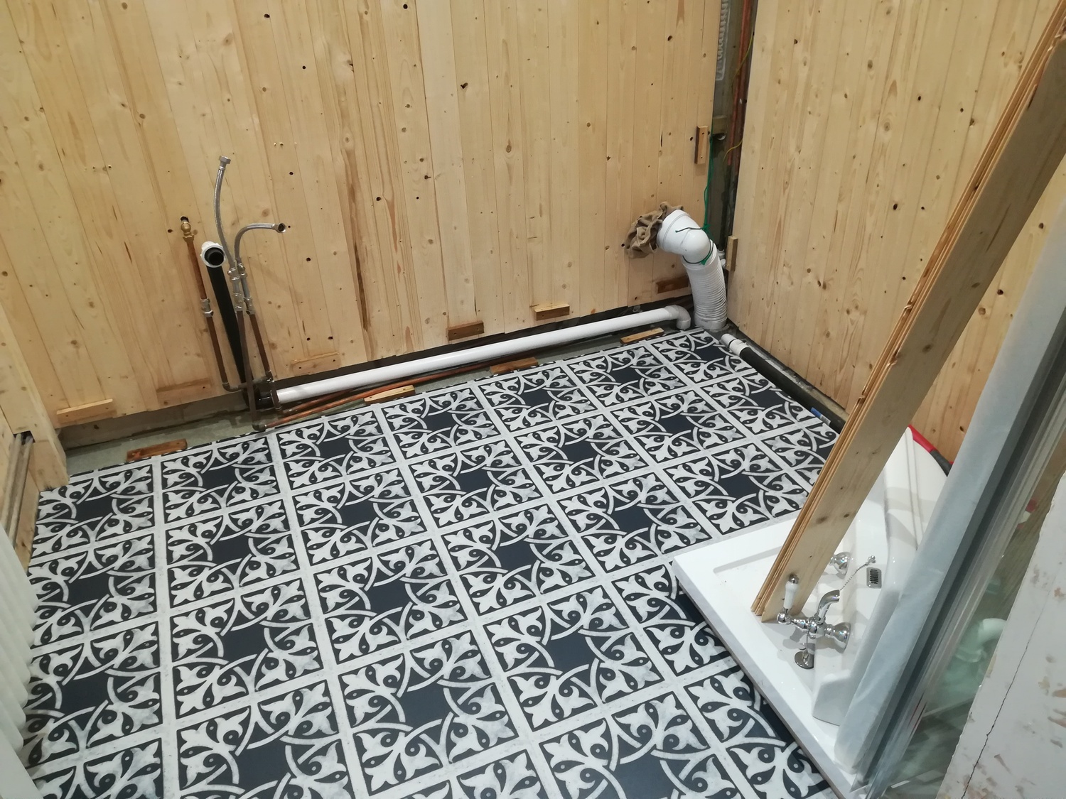 Private residence in Durham. The client required LVT in the boot room and shower room once both rooms had been plywood. Then parquet in the boot room and tile in the shower room.