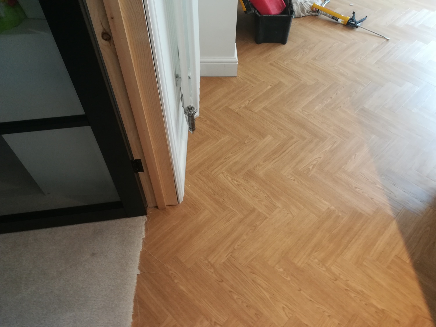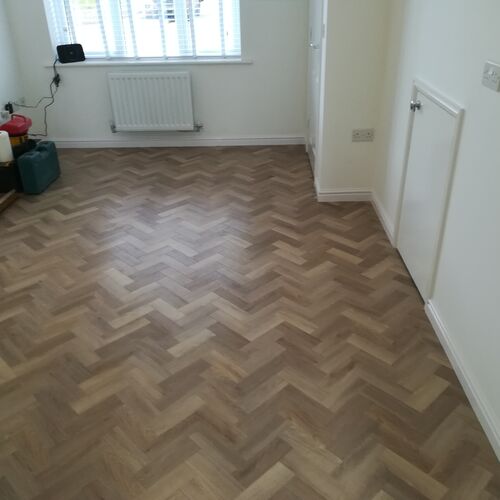 Residence in Chester le street. Preparation consisted of 6mm flooring grade plywood, then Amtico parquet flooring supplied the client was fitted.
