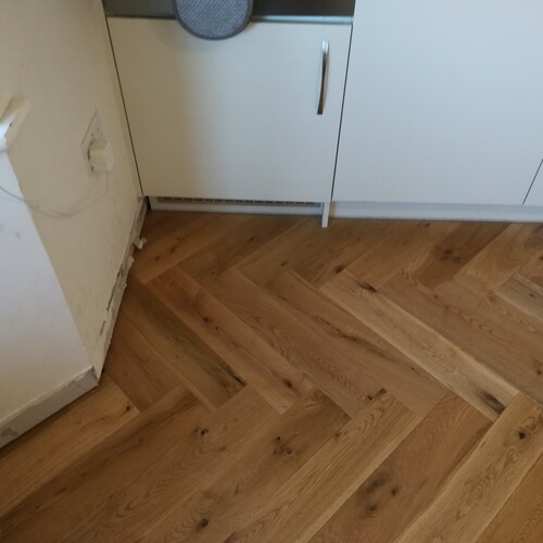 Residence in Newcastle. Client required a partial screed in the kitchen. Then oak flooring laid with a full stick to finish the look.