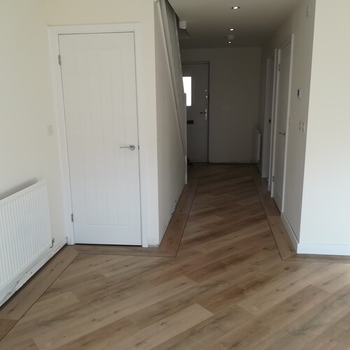 Residence in Newcastle. The client required a full screed in the living room, hallway and toilet. Then the clients own lvt was fitted with a full stick down.